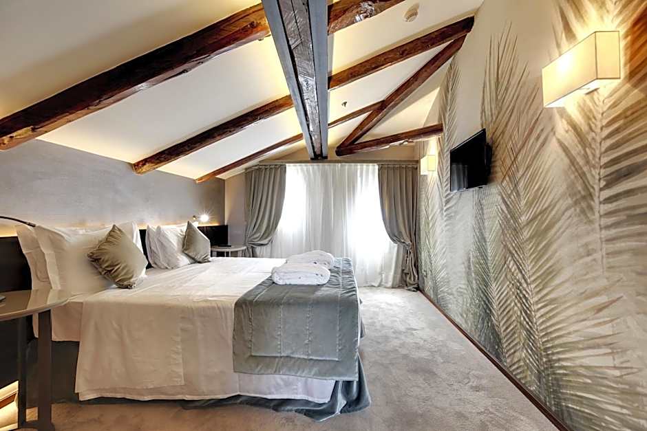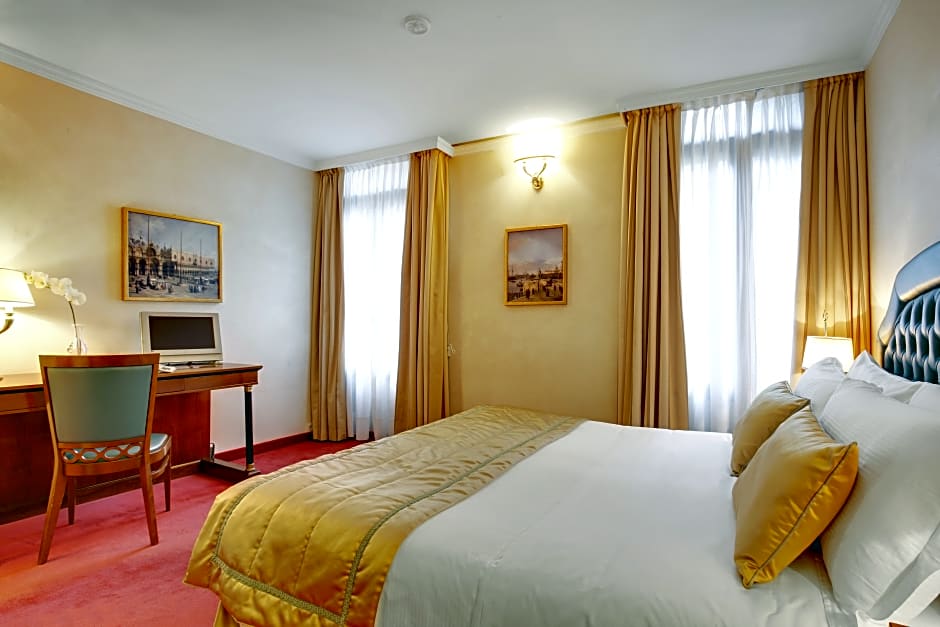 Attic suite with private elevator, small lounge, spa bath, terrace overlooking Saint Mark's Basilica. Offers a mini-bar, LCD satellite TV and air conditioning. WiFi is free. The suite can be reached with a elevator.